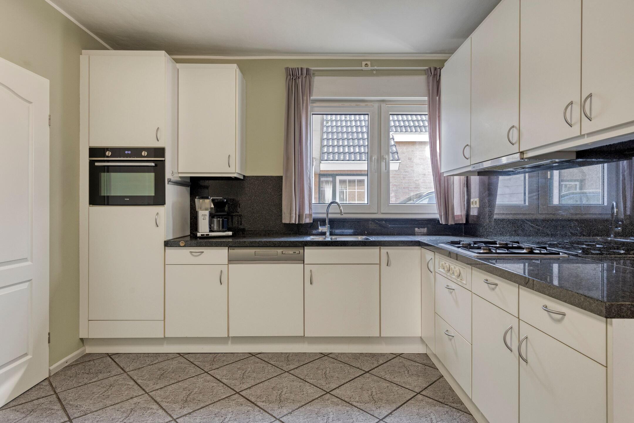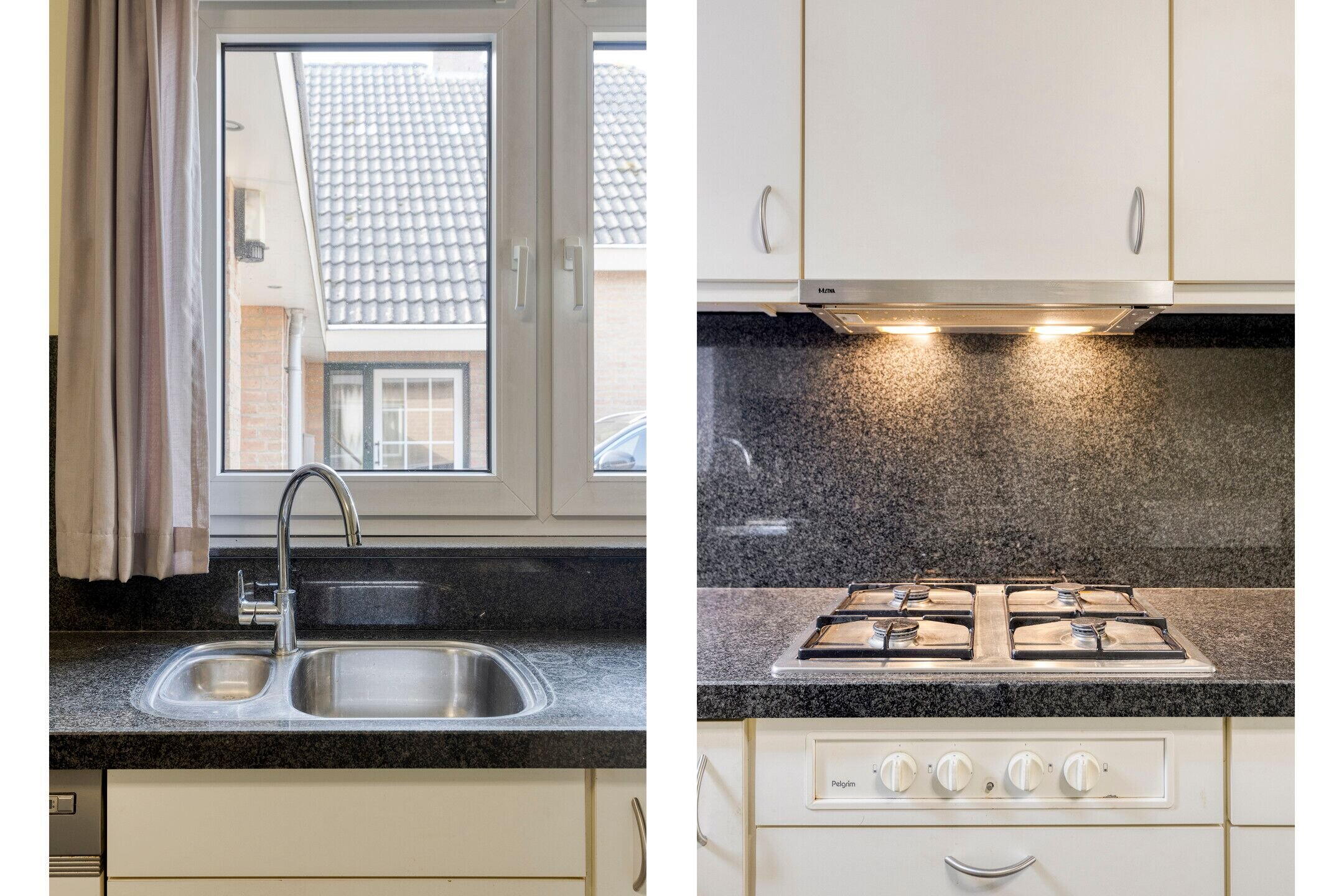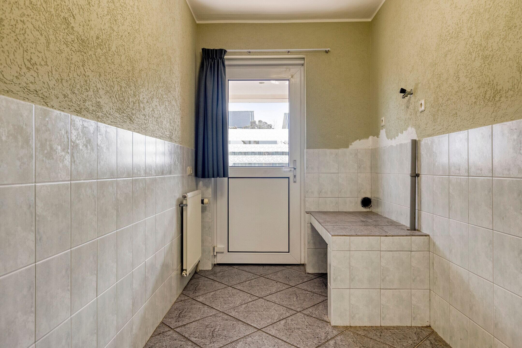 Via de entree komt u in de hal met meterkast. De woonkamer is een lichte en comfortabele leefruimte en voorzien van een sfeervolle elektrische haard. Aansluitend bevindt zich de keuken met een 4-pits gasstel. Vanuit de keuken bereikt u de praktische bijkeuken met toilet en fontein en een aansluiting voor de wasmachine. Vanuit hier heeft u toegang tot de ruime aangebouwde garage met wastafel en een vliering.