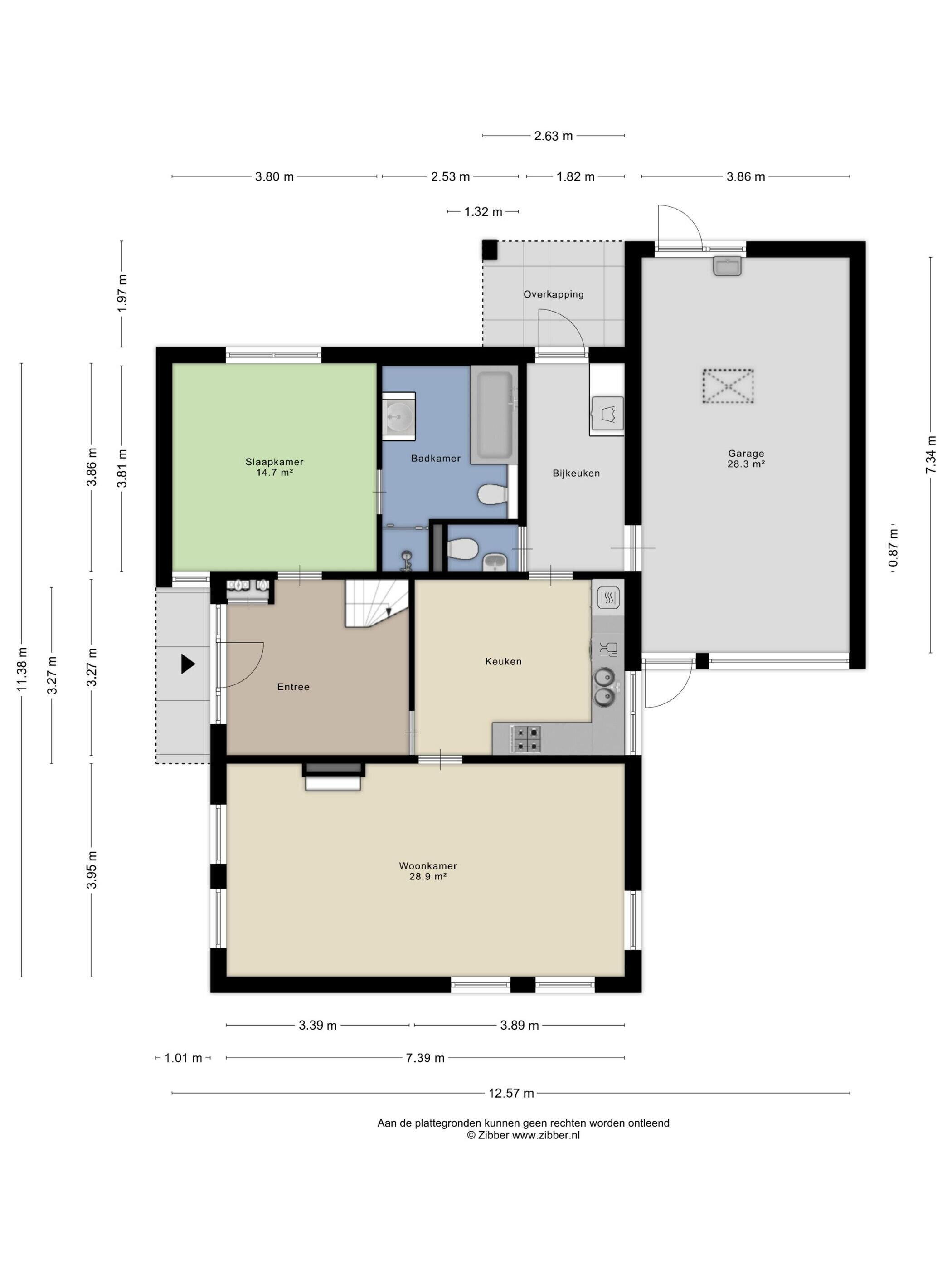 Op de begane grond vindt u een slaapkamer en badkamer, ideaal voor gelijkvloers wonen of een kantoor voor thuiswerken. De aangrenzende garage van circa 28 m² biedt volop ruimte voor hobby, opslag of een auto.